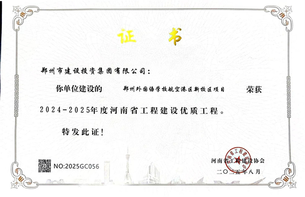 近日,由集團公司代建的鄭州外國語學校航空港區(qū)新校區(qū)項目榮獲2024-2025年度河南省工程建設優(yōu)質(zhì)工程榮譽。
